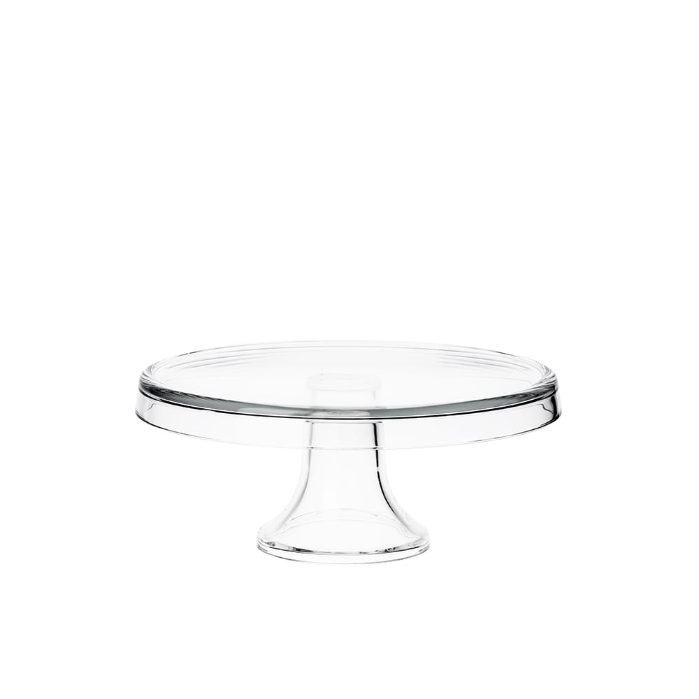 This is a Borgonovo high quality Italian glass round footed serving plate, 27cm. It is perfect for serving at restaurants or for home use. The clear glass is super sturdy, dish washer & microwave safe.