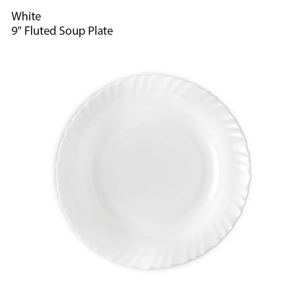 The Borosil fluted white soup plate, 9 inches is made up of extra strong, light weight, toughened opal glass. These plates can be used at various dinner and high tea table settings. This material is 100% bone ash free and is chip resistant. These plates are dishwasher-safe, freezer safe and microwave safe.