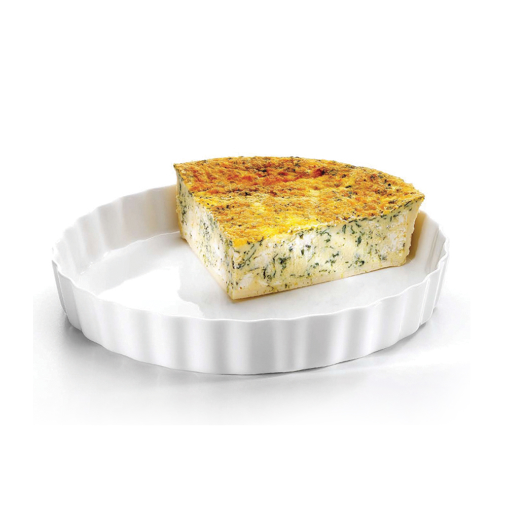 A high quality porcelain, round, 24cm, quiche dish, that can be used to serve at various table settings. It is perfect for baking. Symphony is made of the highest-grade porcelain, fired at more than 1340 degrees, giving it strength, durability and a superior hardness in the glazing. It is oven, dishwasher and microwave safe.